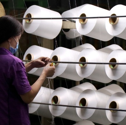 民国88年に生産・販売運営に参入した富岡仮撚工場は、日本製のMURATA摩擦式仮撚機を12台、大色貨加工糸を生産する設備として導入し、さらに特殊規格加工糸用の錠子式仮撚機を8台導入しました。その後、新型日本TMT摩擦式仮撚機を11台追加導入し、合計31台の設備を保有しています。年間生産量は約24,000トンに達し、垂直統合の目的を達成するだけでなく、生産管理においても紡績から織布までの一貫製造の強みを十分に発揮することが可能です。